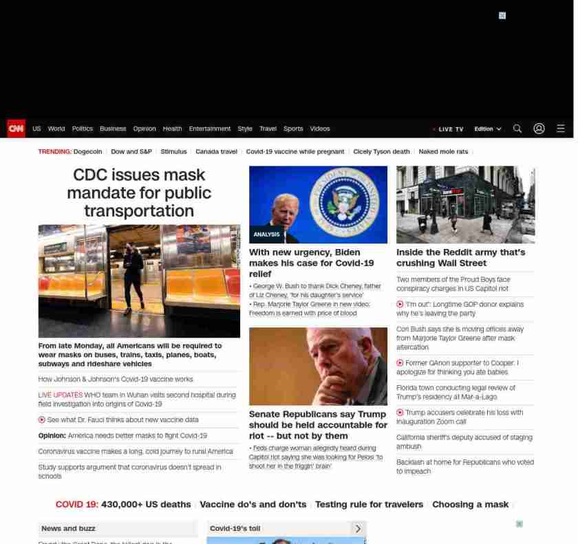 CNN1: FOXVCNN=|CDC issues mask mandate for public transportation| ((lubuntu at wor3 89S7))
