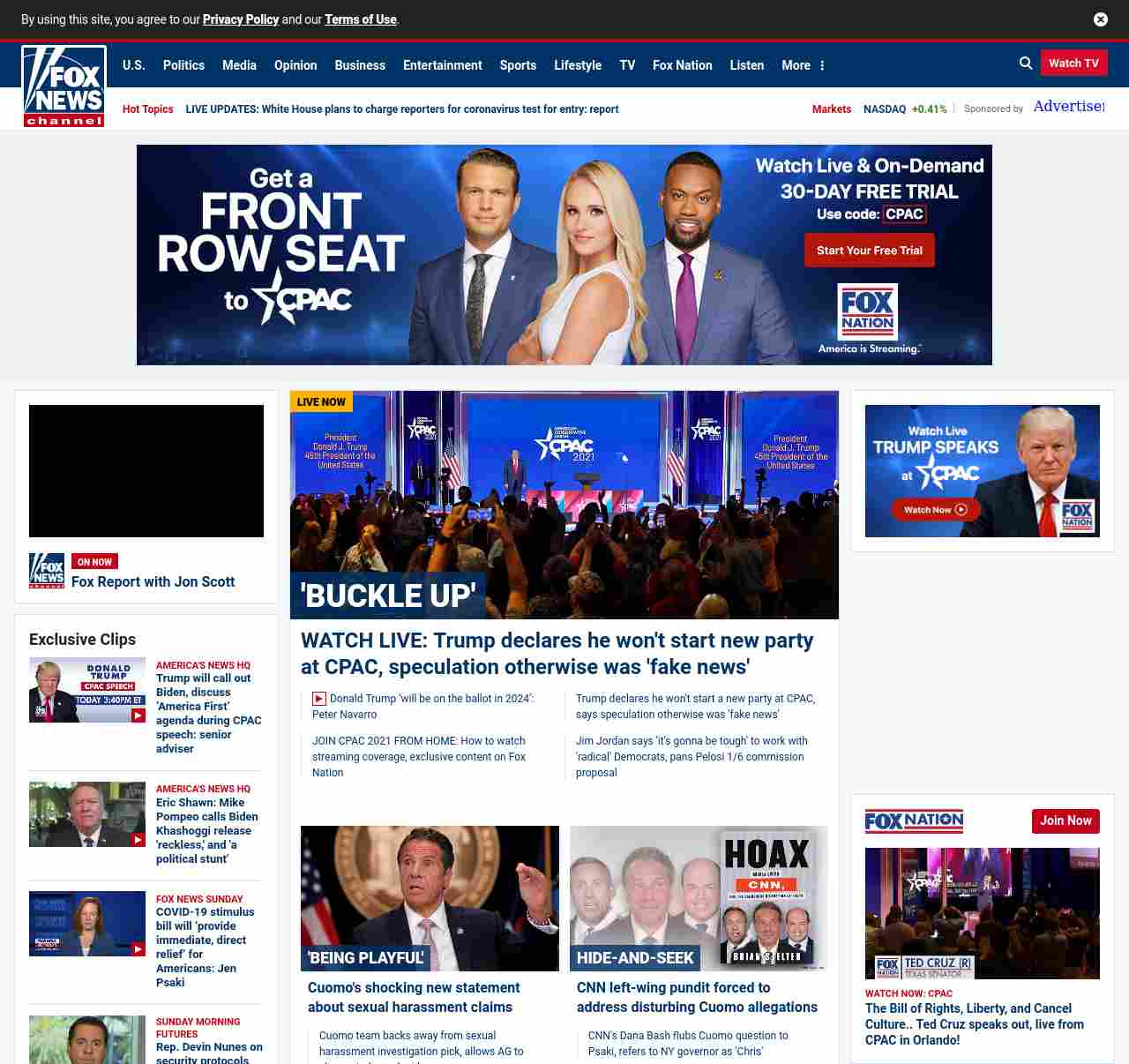 FN: [[' BUCKLE UP' ]] WATCH LIVE: Trump declares he won' t start new party at CPAC, speculation otherwise was ' fake news' </a ((lubuntu at wor3 89S7))