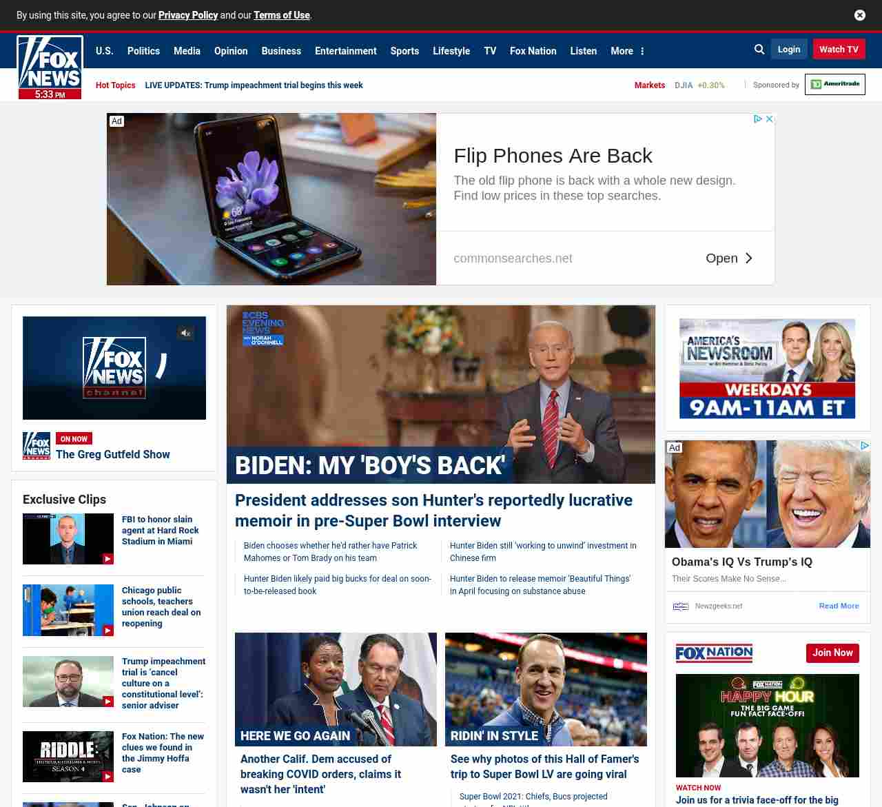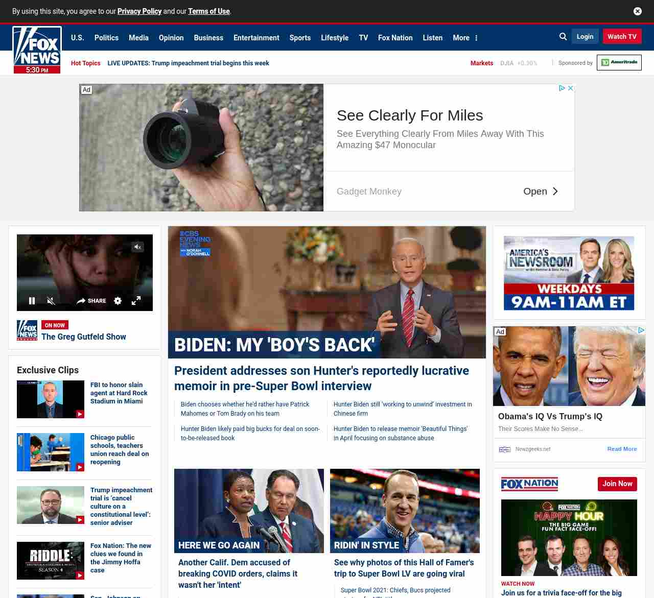 FN: [[BIDEN: MY ' BOY' S BACK' ]] President addresses son Hunter' s reportedly lucrative memoir in pre-Super Bowl interview</a ((lubuntu at wor3 2J1P))