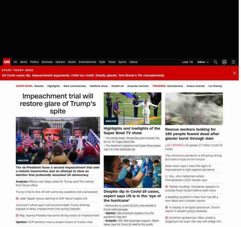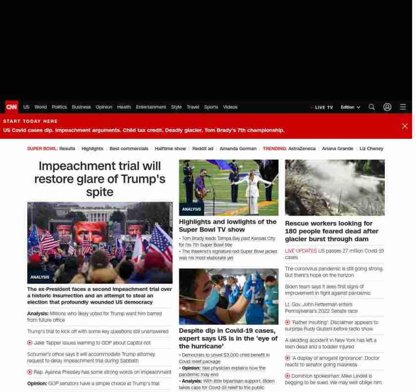 CNN1: FOXVCNN=|Impeachment trial will restore glare of Trump’s spite| ((lubuntu at wor3 89S7))