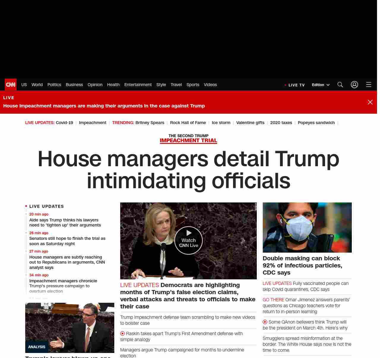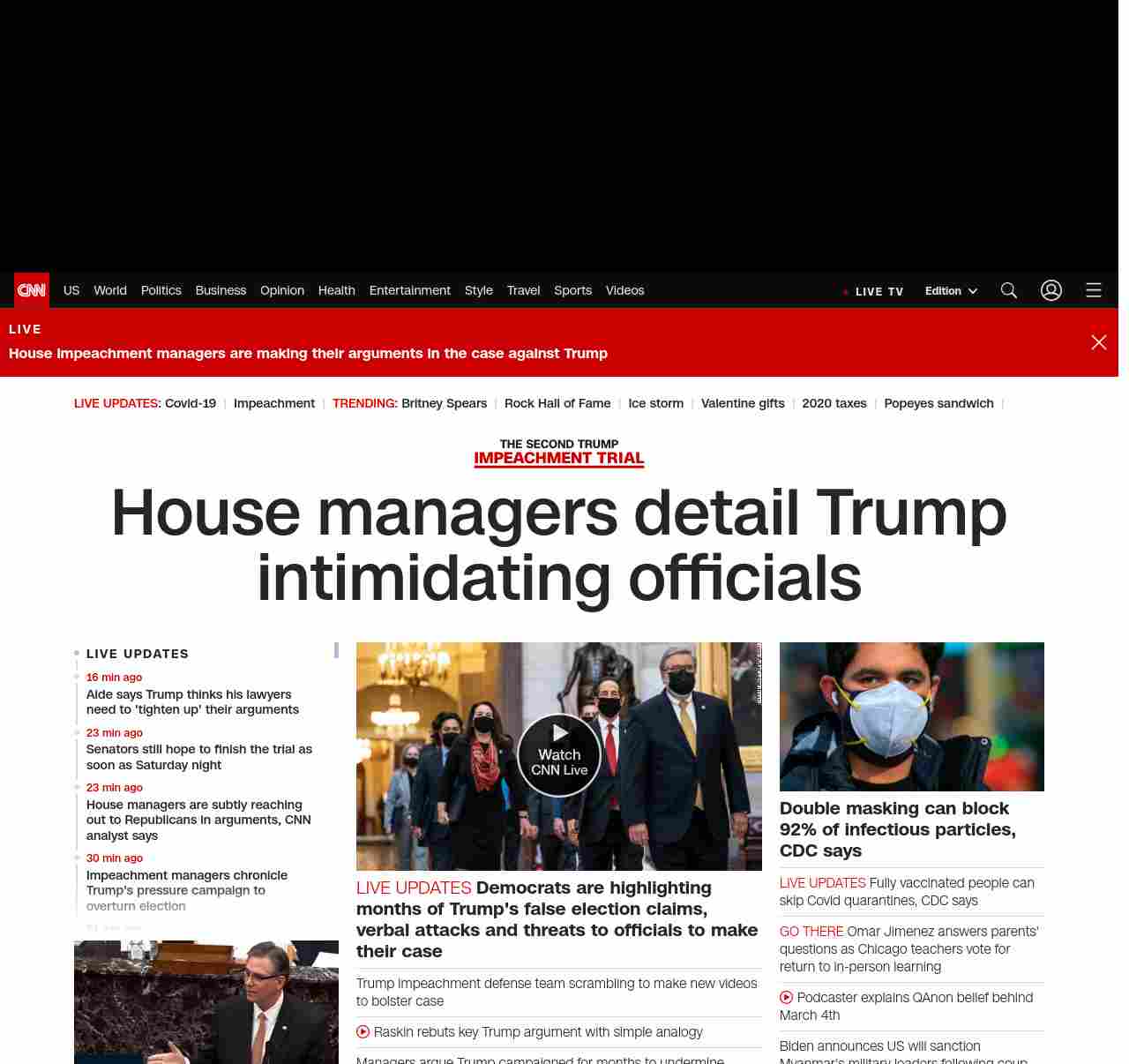 || House managers detail Trump intimidating officials ||”},”chartbeat”:{“sections”:””},”branding_content_page”:”election-day”,”branding_content_zone”:[“default”],”branding_content_container”:[“default”,”cnn-money-markets”,”space-and-science”],”branding_content_card”:[“”]} , edition: “domestic” , sourceId: ”