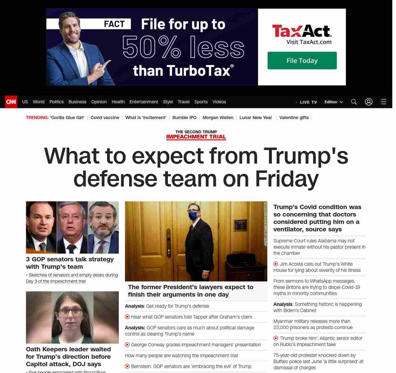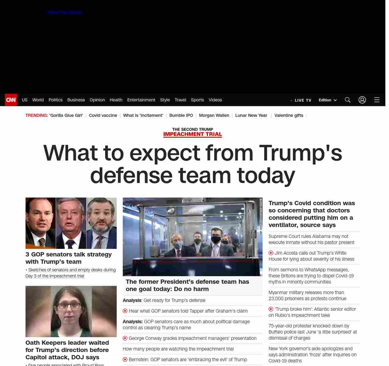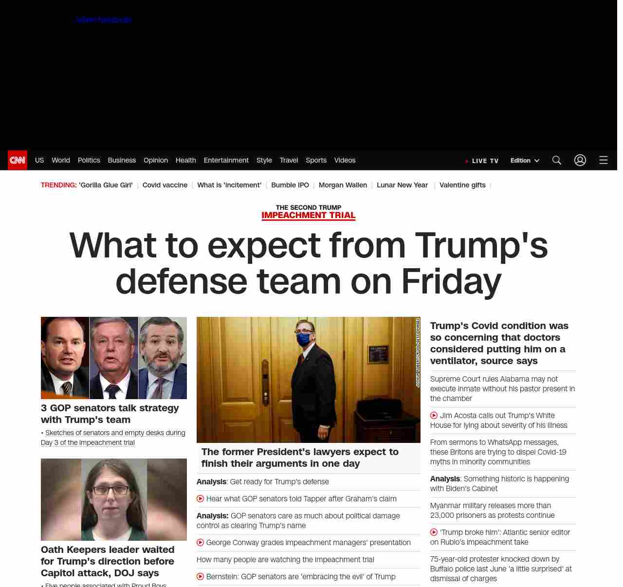 CNN1: FOXVCNN=|What to expect from Trump’s defense team on Friday| ((lubuntu at wor3 89S7))