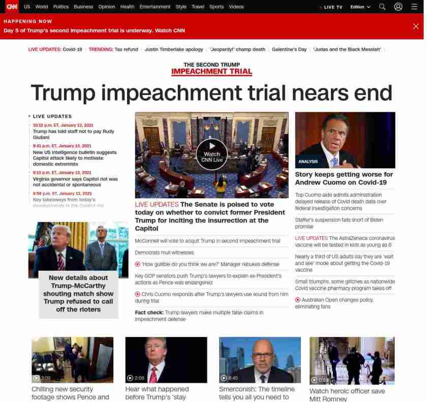 CNN1: FOXVCNN=|Trump impeachment trial nears end| ((lubuntu at wor3 2J1P)) || Trump impeachment trial nears end ||Trump impeachment trial nears end Share this: Share on X (Opens in new window) X Share on Facebook (Opens in new window) Facebook Like Loading... Related