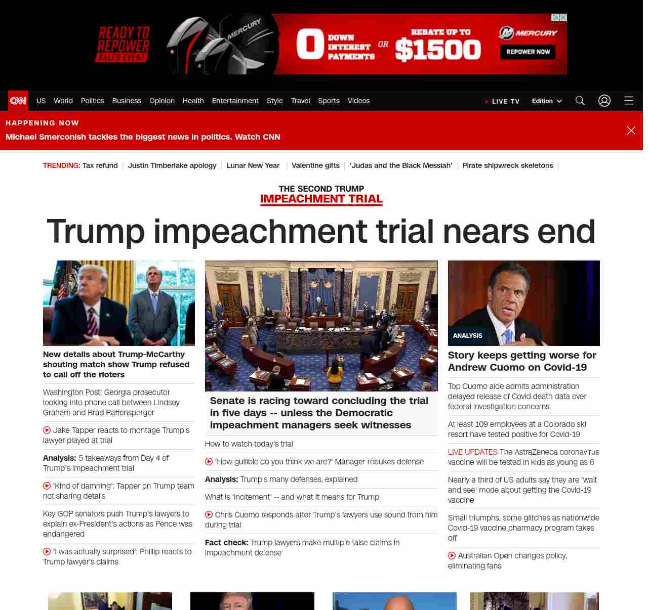CNN1: FOXVCNN=|Trump impeachment trial nears end| ((lubuntu at wor3 2J1P)) || Trump impeachment trial nears end ||Trump impeachment trial nears end Share this: Share on X (Opens in new window) X Share on Facebook (Opens in new window) Facebook Like Loading... Related