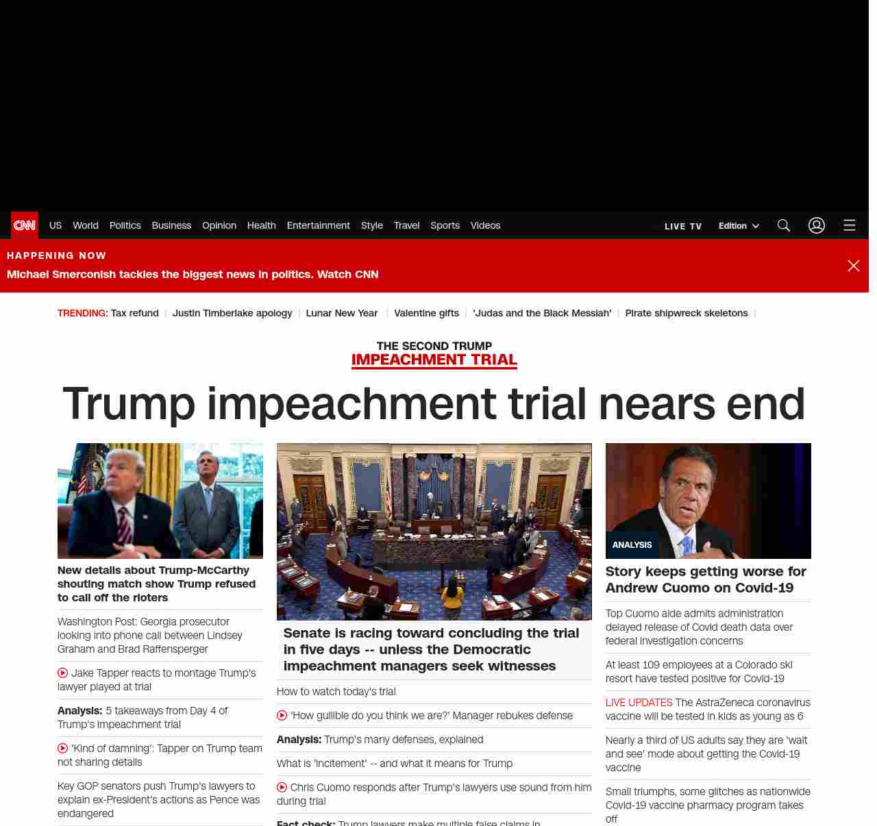 || Trump impeachment trial nears end ||”},”chartbeat”:{“sections”:””},”branding_content_page”:”election-day”,”branding_content_zone”:[“default”],”branding_content_container”:[“default”,”cnn-money-markets”,”space-and-science”],”branding_content_card”:[“”]} , edition: “domestic” , sourceId: ”