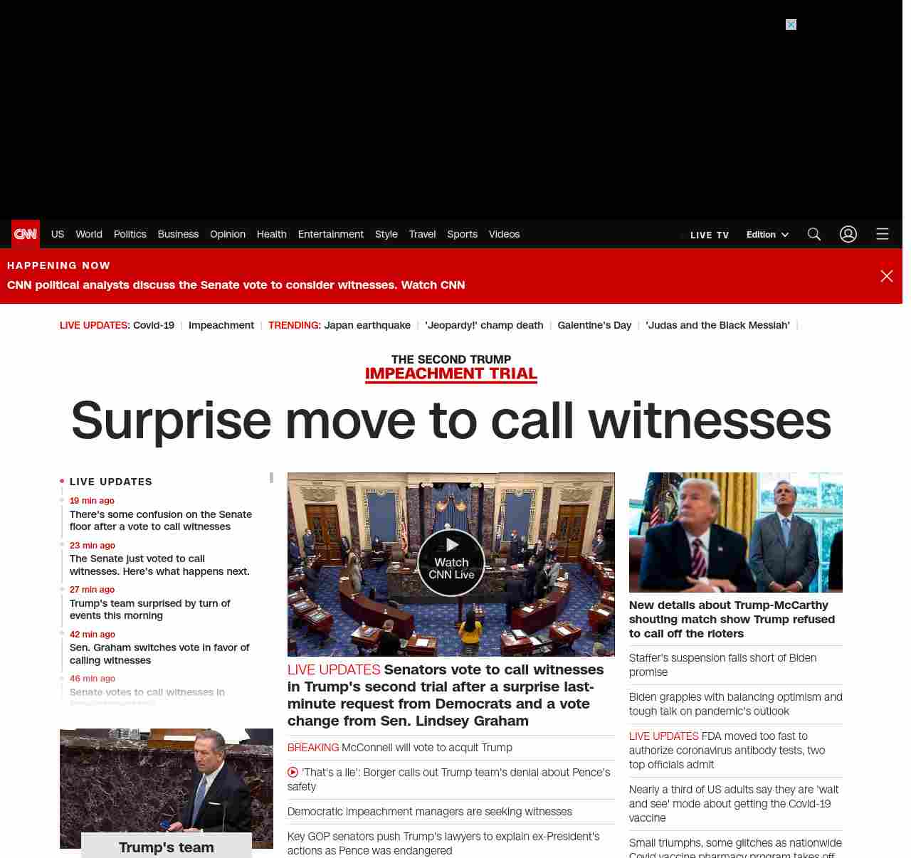 FN: [[WHAT' S NEXT?]] WATCH LIVE: In seismic shift, senators vote to call witnesses, extend Trump impeachment trial</a ((lubuntu at wor3 2J1P))