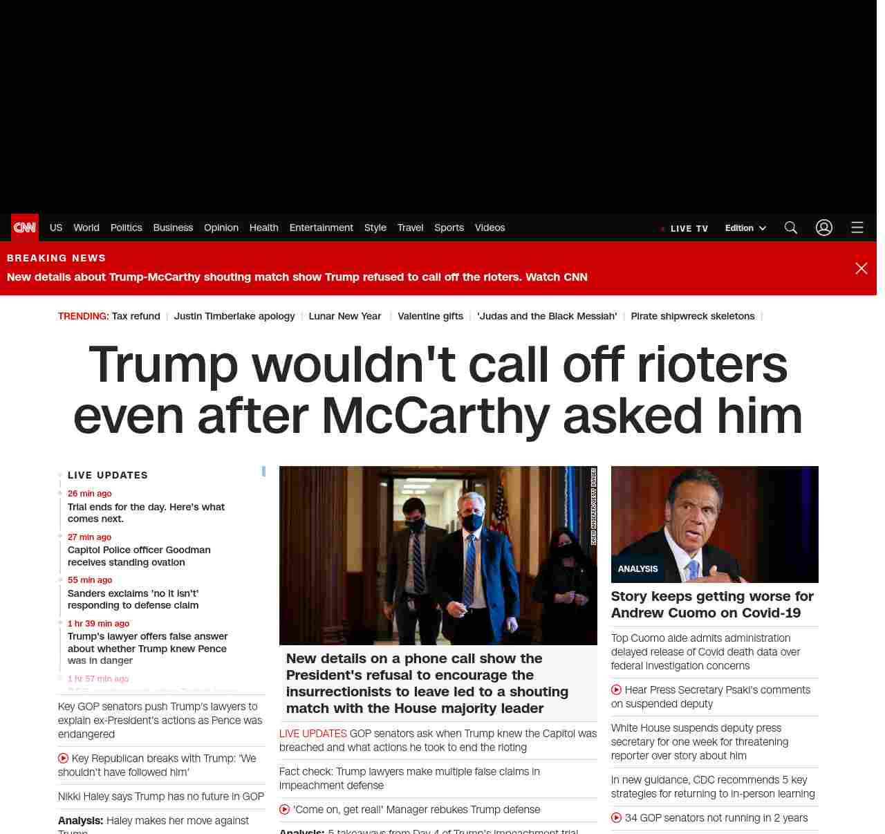 CNN1: FOXVCNN=|Trump wouldn’t call off rioters even after McCarthy asked him| ((lubuntu at wor3 89S7)) || Trump wouldn’t call off rioters even after McCarthy asked him ||Trump wouldn’t call off rioters even after McCarthy asked him