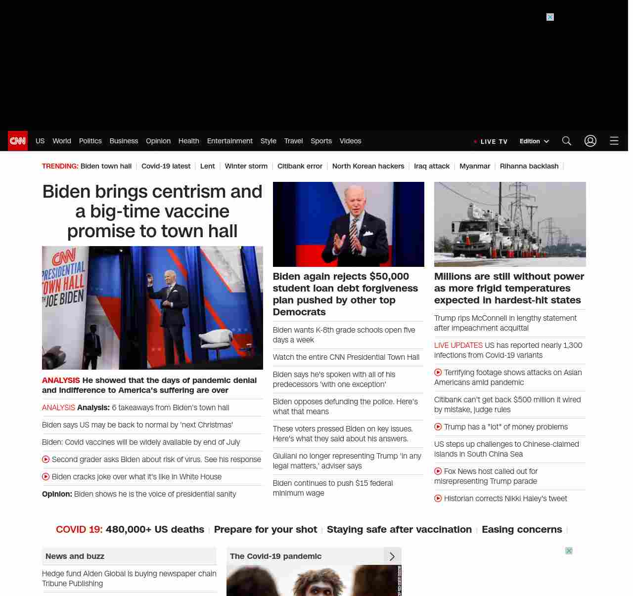 CNN1: FOXVCNN=|Biden brings centrism and a big-time vaccine promise to town hall| ((lubuntu at wor3 89S7))