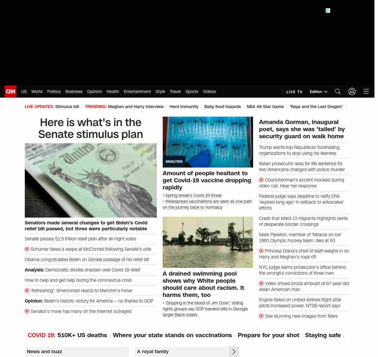 President Biden speaks from the State Dining Room of the White House on Saturday, following the Senate’s passage of his COVID-19 relief package by a 50-49 vote.