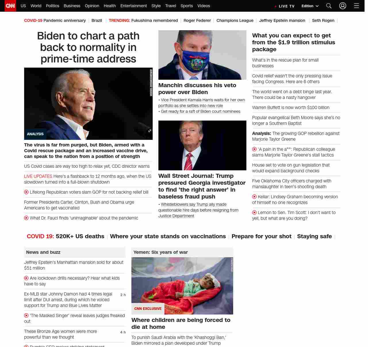 || Biden to chart a path back to normality in prime-time address ||”},”chartbeat”:{“sections”:””},”branding_content_page”:”default”,”branding_content_zone”:[“default”],”branding_content_container”:[“default”,”cnn-money-markets”,”space-and-science”],”branding_content_card”:[“”]} , edition: “domestic” , sourceId: ”