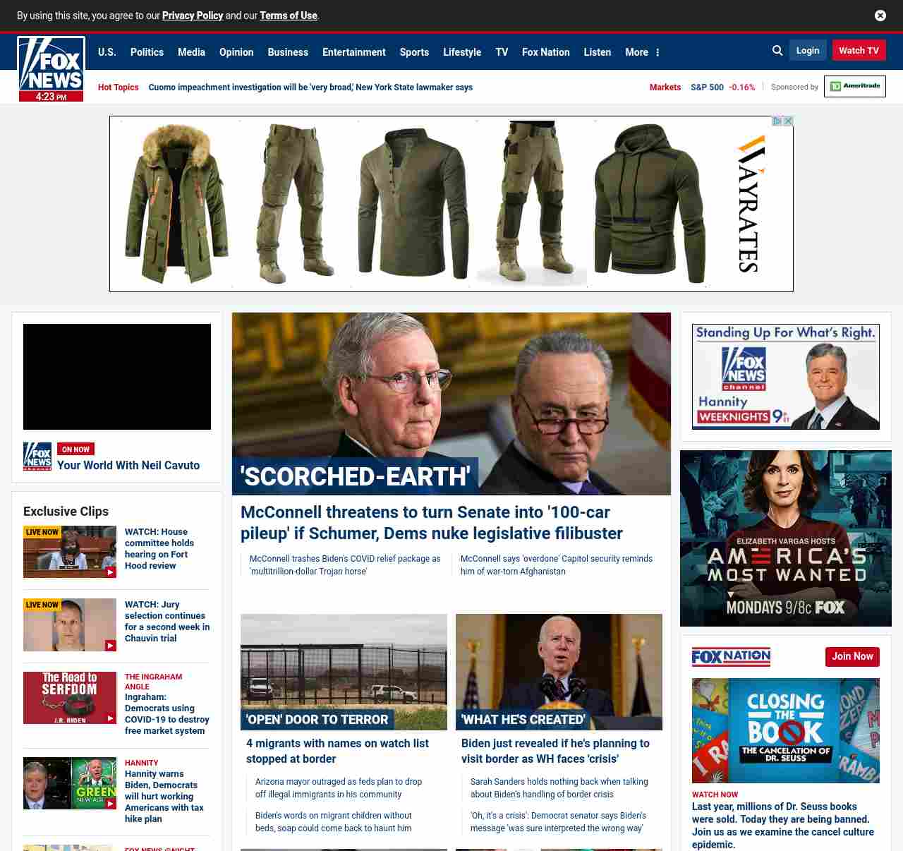 \n This material may not be published, broadcast, rewritten,\n or redistributed. \xc3\x82\xc2\xa92021 FOX News Network, LLC. All rights reserved.\n Quotes displayed in real-time or delayed by at least 15 minutes. Market data provided by Factset. Powered and implemented by FactSet Digital Solutions. Legal Statement. Mutual Fund and ETF data provided by Refinitiv Lipper.\n