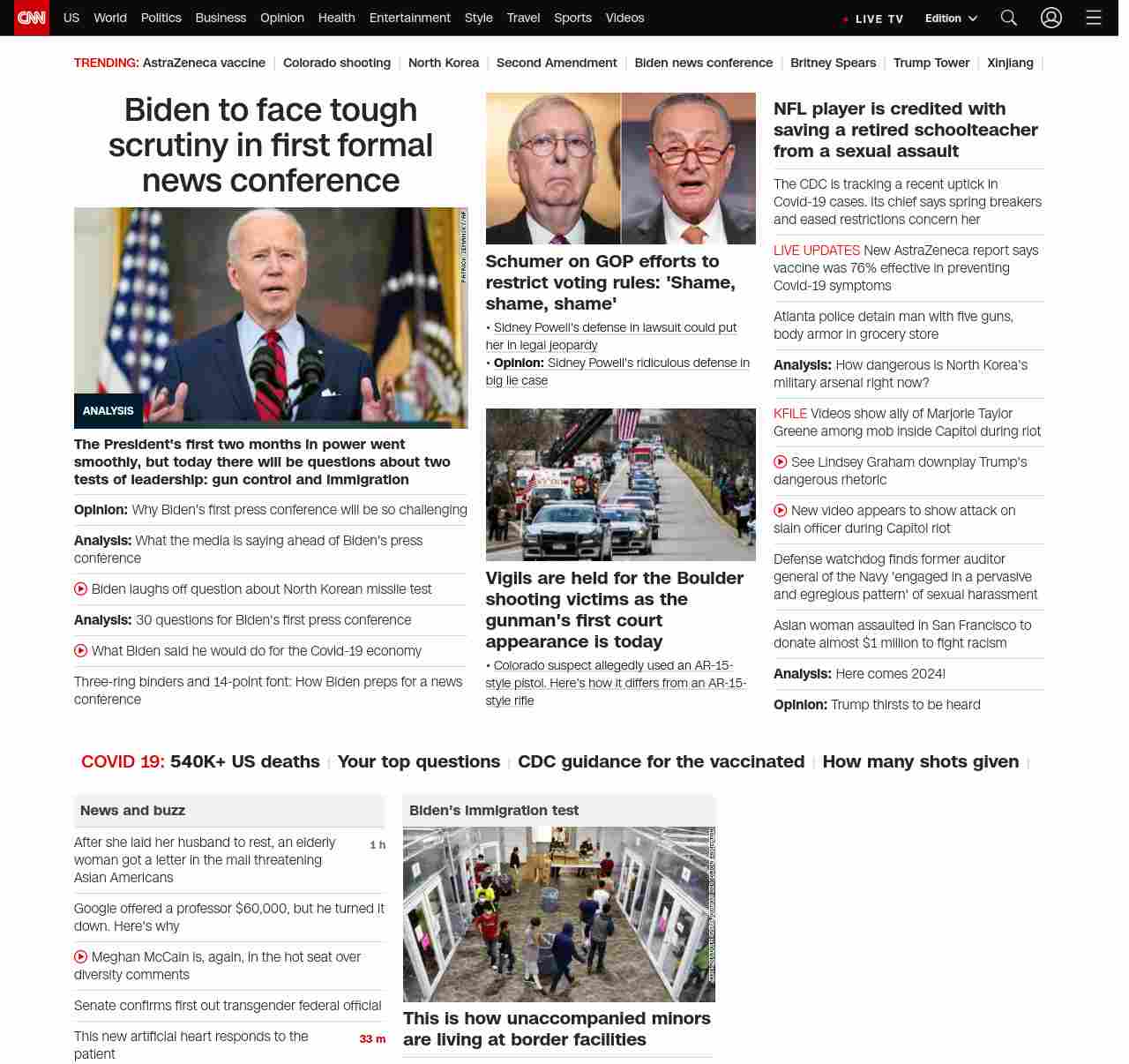 || Biden to face tough scrutiny in first formal news conference ||”},”chartbeat”:{“sections”:””},”branding_content_page”:”default”,”branding_content_zone”:[“default”],”branding_content_container”:[“default”,”cnn-money-markets”,”space-and-science”],”branding_content_card”:[“”]} , edition: “domestic” , sourceId: ”