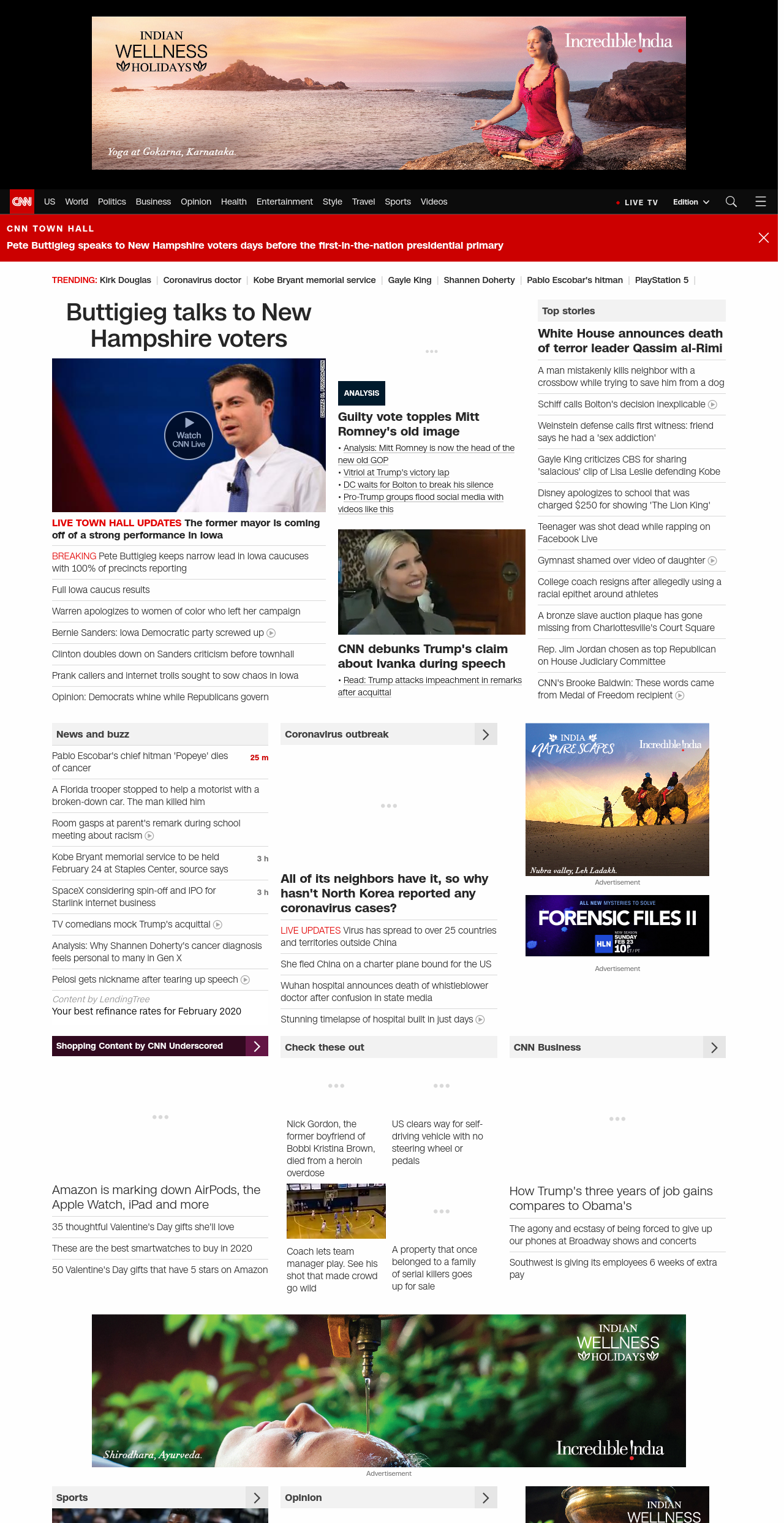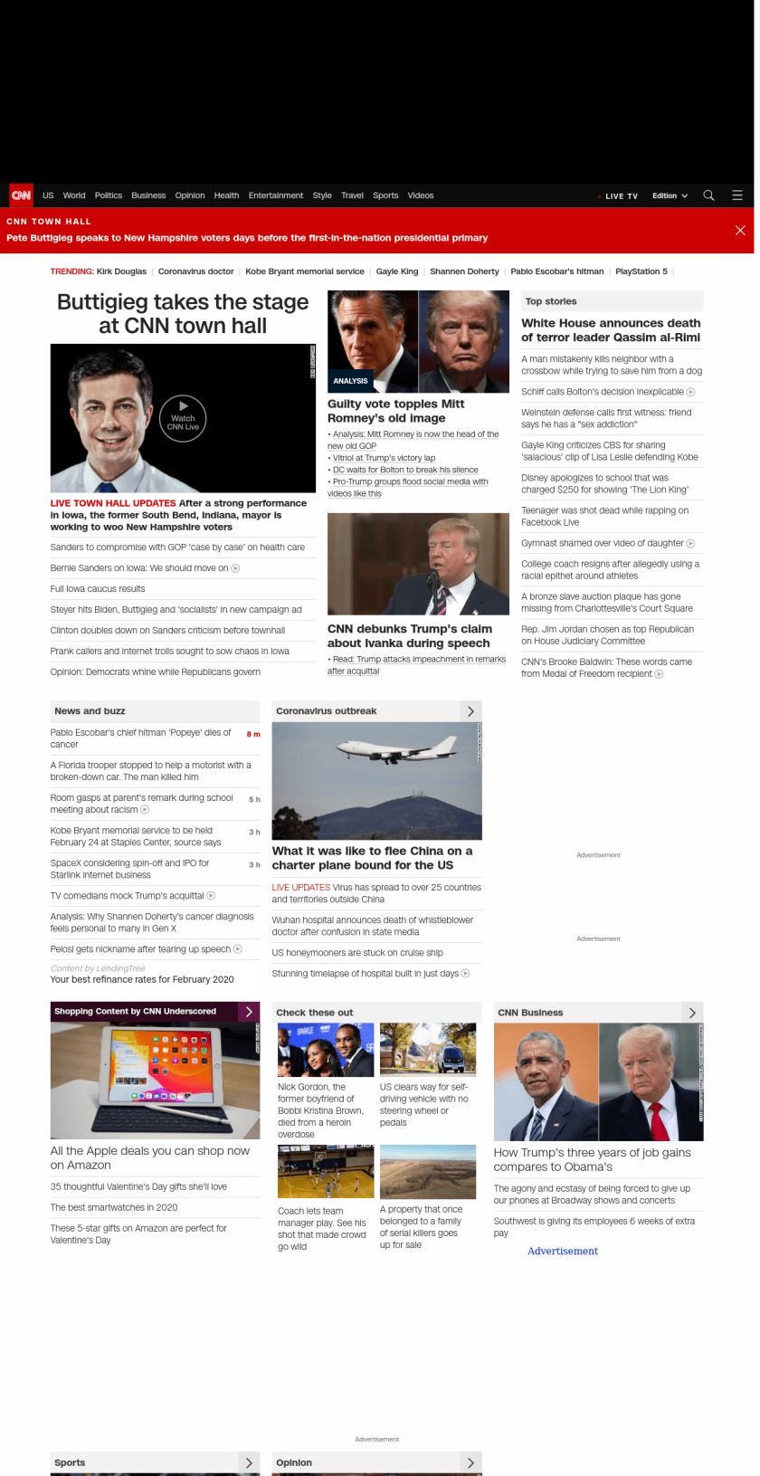 || Buttigieg takes the stage at CNN town hall ||” , title: “CNN – Breaking News, Latest News and Videos” , siblings: {“articleList”:[{“uri”:”/politics/live-news/cnn-02-06-20/index.html”,”headline”:”u003cstrong>After a strong performance in Iowa, the former South Bend, Indiana, mayor is working to woo New Hampshire votersu003c/strong>”,”thumbnail”:”//cdn.cnn.com/cnnnext/dam/assets/200206205856-01-buttigieg-town-hall-0206-small-11.jpg”,”duration”:””,”description”:”⢠u003ca href=”https://www.cnn.com/election/2020/state/iowa” target=”_blank”>Full Iowa caucuses resultsu003c/a>u003cbr />⢠u003ca href=”https://www.cnn.com/2020/02/06/politics/iowa-caucus-results/index.html” target=”_blank”>DNC chair calls for a recanvass in Iowau003c/a>u003cbr />â¢u003ca href=”https://www.cnn.com/2020/02/06/opinions/democratic-new-hampshire-primary-up-for-grabs-guild/index.html” target=”_blank”> Opinion: NH primary is still up for grabsu003c/a>u003cbr />⢠u003ca href=”https://www.cnn.com/2020/02/06/politics/iowa-caucus-prank-callers-chaos/index.html” target=”_blank”>Prank callers and internet trolls sought to sow chaos on Iowa caucus nightu003c/a>”,”layout”:””