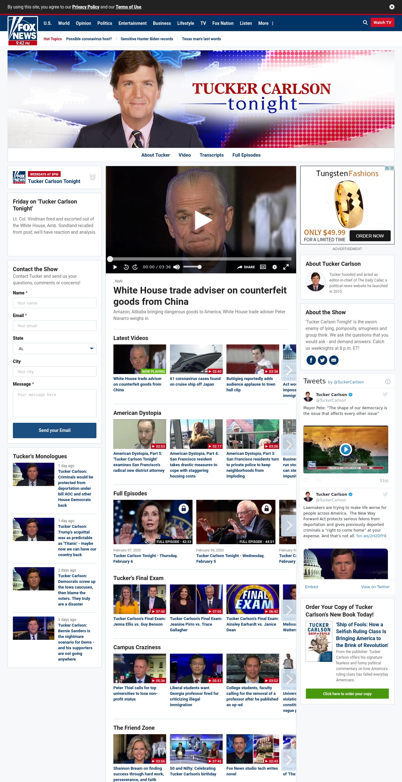 TC: White House trade adviser on counterfeit goods from China ((tuckercarlson_____)) ((lubuntu at wor3))