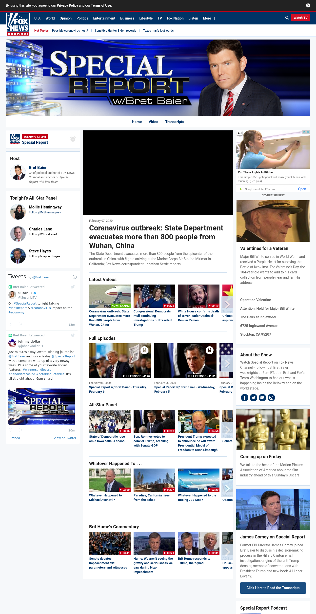 The State Department evacuates more than 800 people from the epicenter of the outbreak in China, with flights arriving at the Marine Corps Air Station Mirimar in California; Fox News correspondent Jonathan Serrie reports.