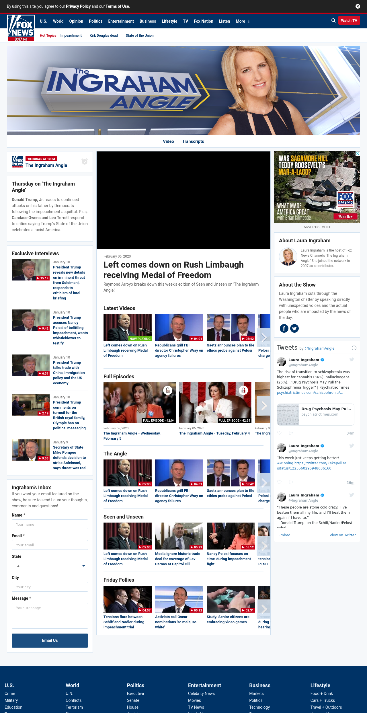 IA: Left comes down on Rush Limbaugh receiving Medal of Freedom ((ingramangle_______)) ((lubuntu at wor3)) Raymond Arroyo breaks down this week’s edition of Seen and Unseen on ‘The Ingraham Angle.’