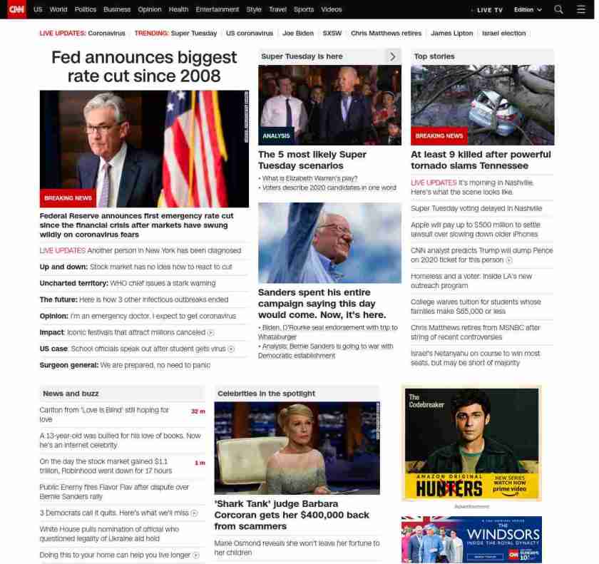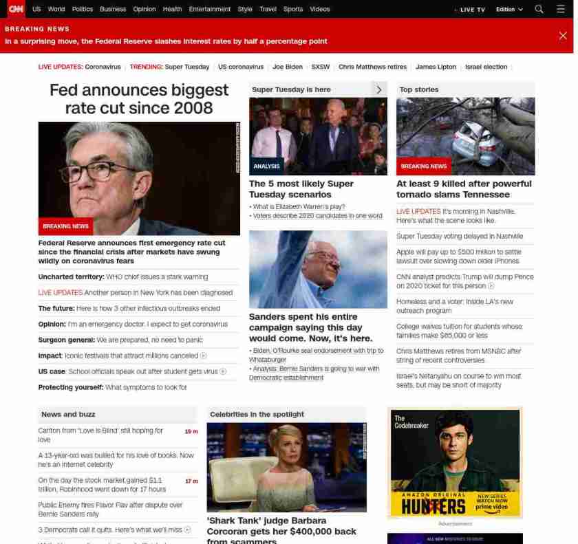 || screaming-banner-text banner-text-size–char-44″ data-analytics=”_list-hierarchical-xs_article_”> Fed announces biggest rate cut since 2008 ||” , title: “CNN – Breaking News, Latest News and Videos” , siblings: {“articleList”:[{“uri”:”/2020/03/03/economy/federal-reserve-rate-cut/index.html”,”headline”:”u003cstrong>Federal Reserve announces first emergency rate cut since the financial crisis after markets have swung wildly on coronavirus fearsu003c/strong>”,”thumbnail”:”//cdn.cnn.com/cnnnext/dam/assets/200303102734-03-jerome-powell-0129-small-11.jpg”,”duration”:””,”description”:”The Federal Reserve slashed interest rates by half a percentage point on Tuesday.”,”layout”:””