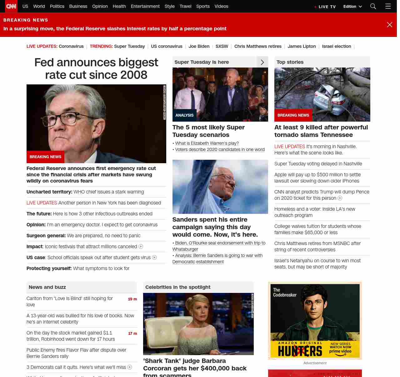 || screaming-banner-text banner-text-size–char-44″ data-analytics=”_list-hierarchical-xs_article_”> Fed announces biggest rate cut since 2008 ||” , title: “CNN – Breaking News, Latest News and Videos” , siblings: {“articleList”:[{“uri”:”/2020/03/03/economy/federal-reserve-rate-cut/index.html”,”headline”:”u003cstrong>Federal Reserve announces first emergency rate cut since the financial crisis after markets have swung wildly on coronavirus fearsu003c/strong>”,”thumbnail”:”//cdn.cnn.com/cnnnext/dam/assets/200303102734-03-jerome-powell-0129-small-11.jpg”,”duration”:””,”description”:”The Federal Reserve slashed interest rates by half a percentage point on Tuesday.”,”layout”:””