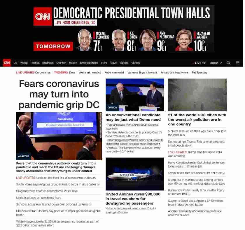 CNN3: “:”u003cstrong>Fears that the coronavirus outbreak could turn into a pandemic and reach the US are challenging Trump’s sunny assurances that everything is under controlu003c/strong>”, “BANNER=|pagerendered| ((lubuntu at wor3))