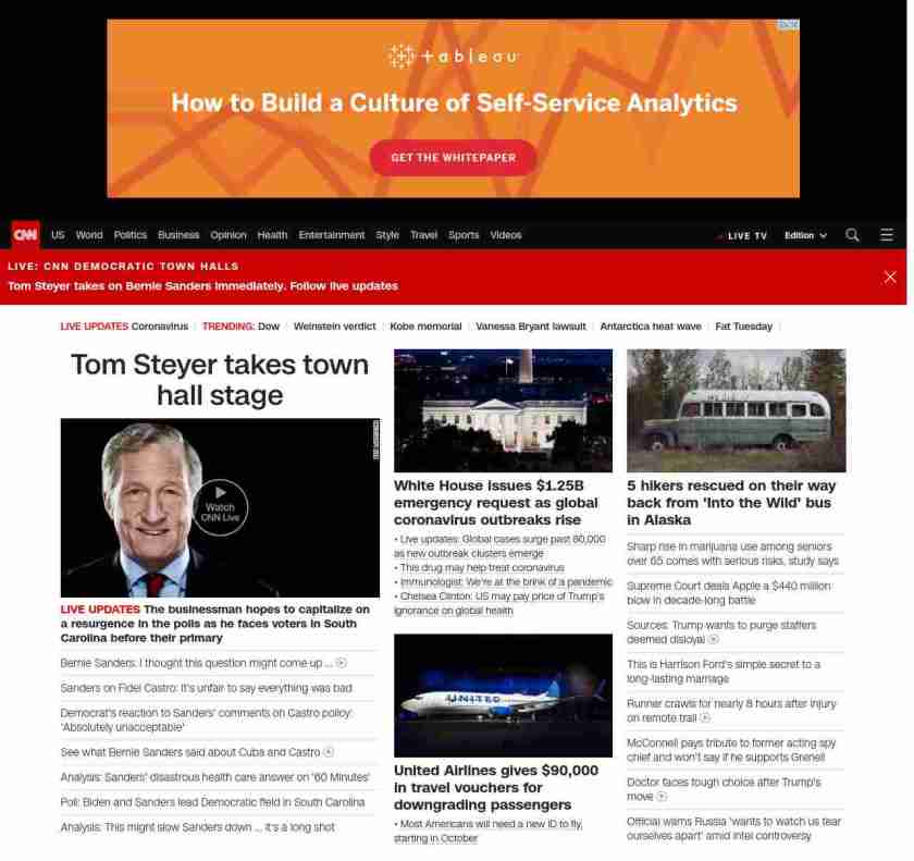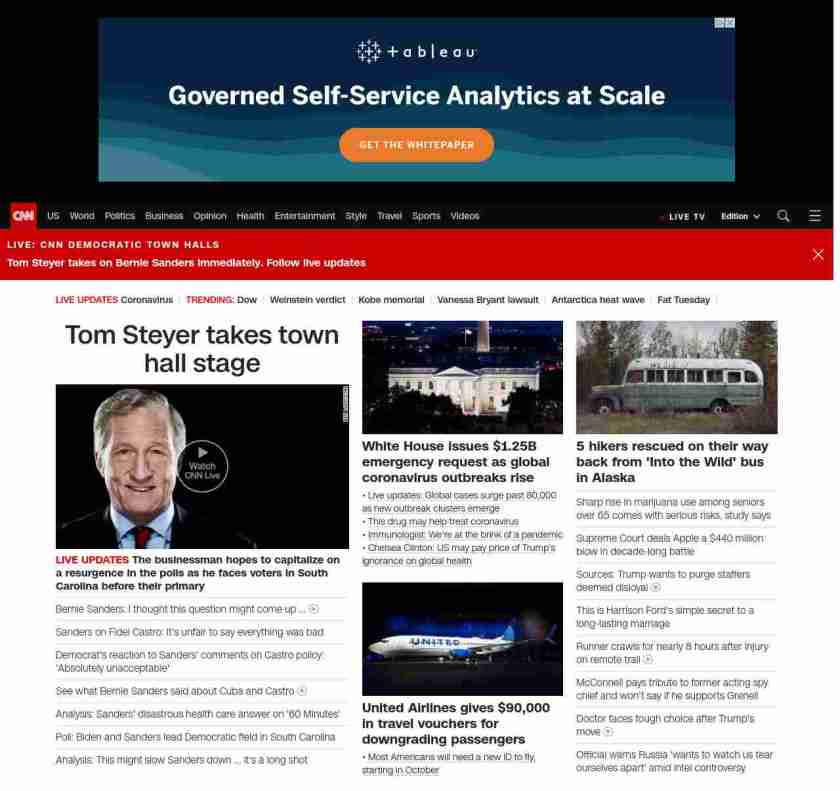 || screaming-banner-text banner-text-size–char-35″ data-analytics=”_list-hierarchical-xs_story_”> Tom Steyer takes town hall stage ||” , title: “CNN – Breaking News, Latest News and Videos” , siblings: {“articleList”:[{“uri”:”/politics/live-news/2020-democratic-town-hall-south-carolina-monday/index.html”,”headline”:”u003cstrong>The businessman hopes to capitalize on a resurgence in the polls as he faces voters in South Carolina before their primary u003c/strong>”,”thumbnail”:”//cdn.cnn.com/cnnnext/dam/assets/200203022957-tom-steyer-lead-headshot-small-11.jpg”,”duration”:””,”description”:””,”layout”:””