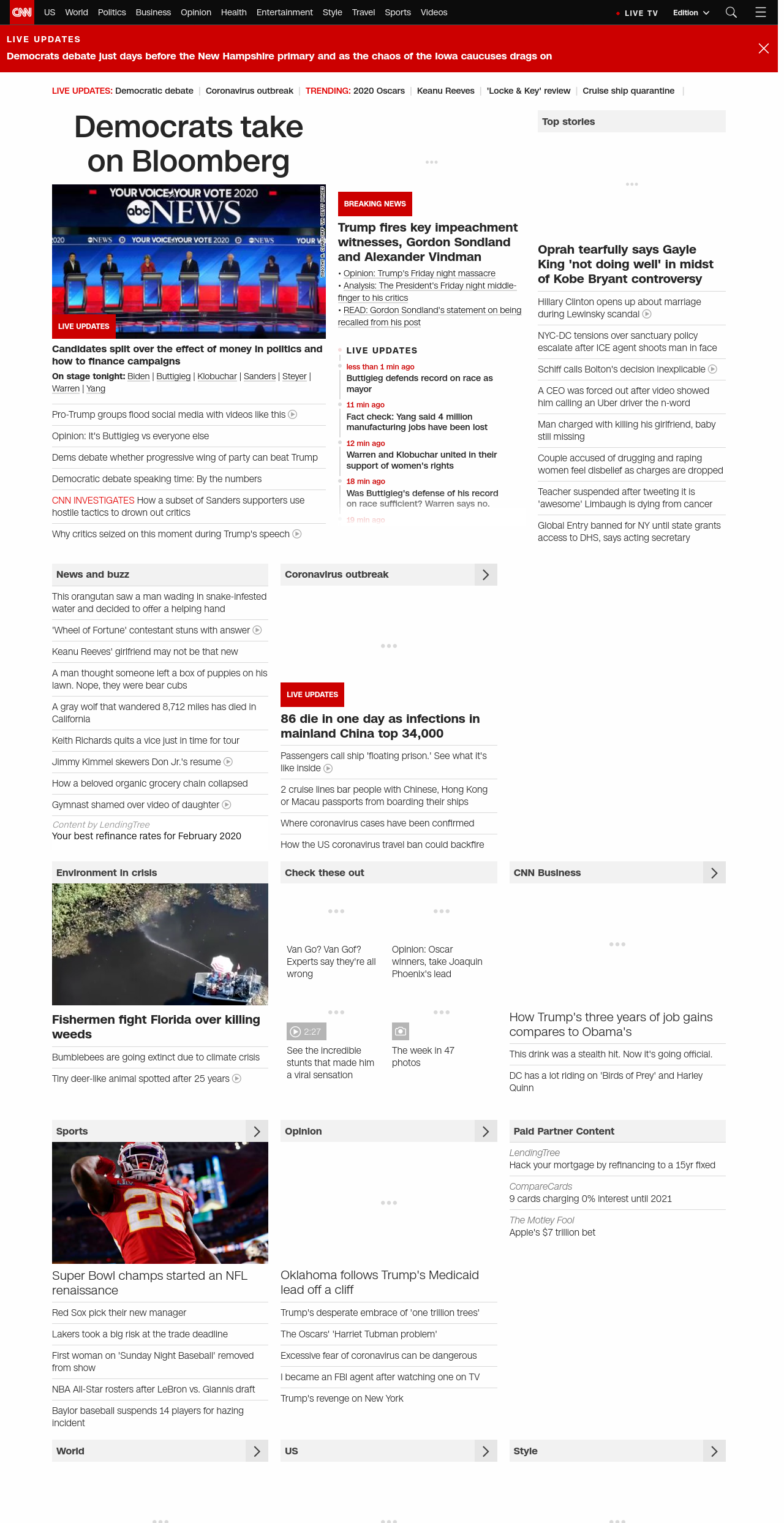 || Democrats take on Bloomberg ||” , title: “CNN – Breaking News, Latest News and Videos” , siblings: {“articleList”:[{“uri”:”/politics/live-news/democratic-debate-live/index.html”,”headline”:”u003cstrong>Candidates split over the effect of money in politics and how to finance campaignsu003c/strong>”,”thumbnail”:”//cdn.cnn.com/cnnnext/dam/assets/200207202033-03-abc-dem-debate-0207-small-11.jpg”,”duration”:””,”description”:”u003cstrong>On stage tonight:u003c/strong> u003ca href=”https://www.cnn.com/election/2020/candidate/biden” target=”_blank”>Bidenu003c/a> | u003ca href=”https://www.cnn.com/election/2020/candidate/buttigieg” target=”_blank”>Buttigiegu003c/a> | u003ca href=”https://www.cnn.com/election/2020/candidate/klobuchar” target=”_blank”>Klobucharu003c/a> | u003ca href=”https://www.cnn.com/election/2020/candidate/sanders” target=”_blank”>Sandersu003c/a> | u003ca href=”https://www.cnn.com/election/2020/candidate/steyer” target=”_blank”>Steyeru003c/a> | u003ca href=”https://www.cnn.com/election/2020/candidate/warren” target=”_blank”>Warrenu003c/a> | u003ca href=”https://www.cnn.com/election/2020/candidate/yang” target=”_blank”>Yangu003c/a>”,”layout”:””