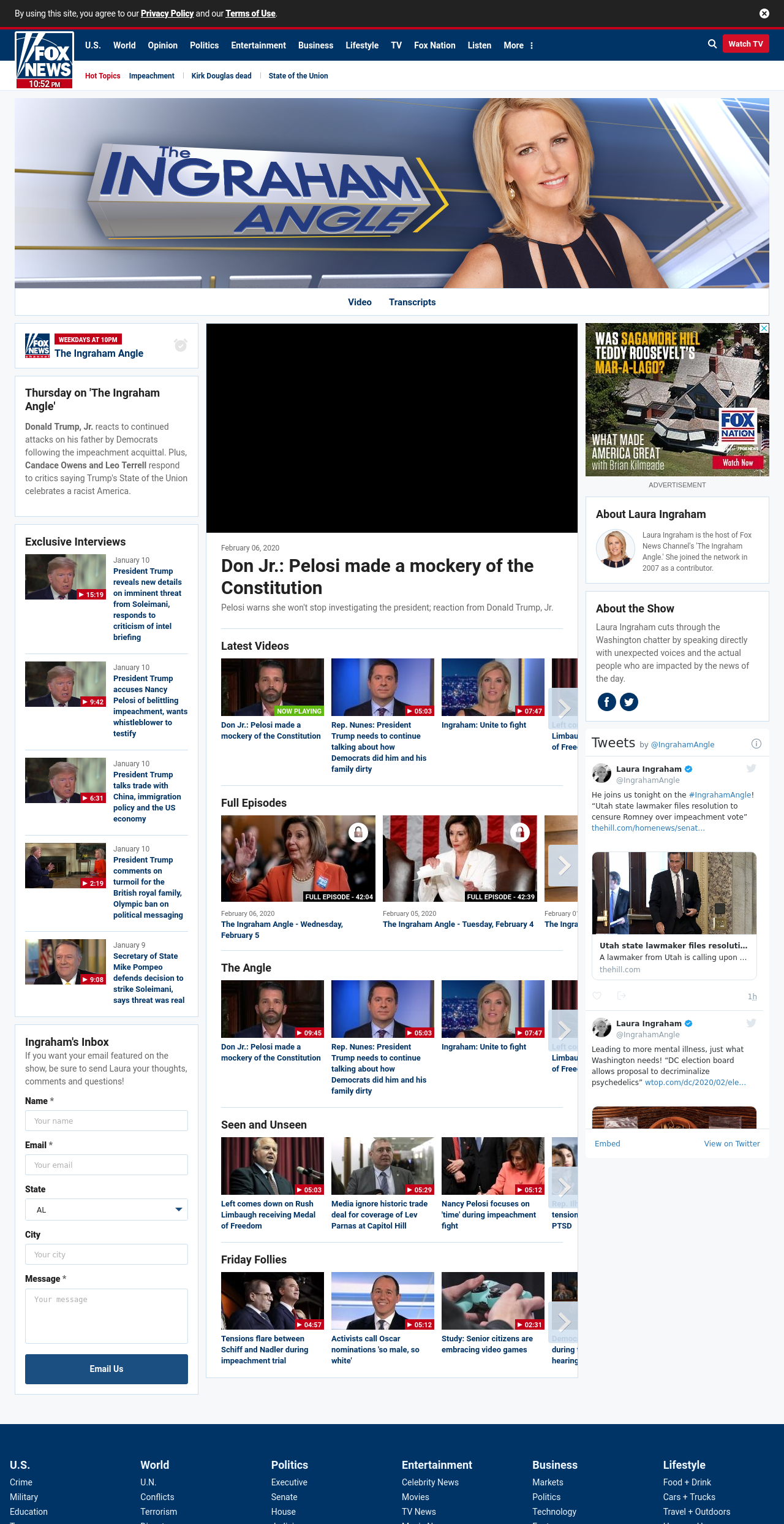 IA: Don Jr.: Pelosi made a mockery of the Constitution ((ingramangle_______)) ((lubuntu at wor3)) Pelosi warns she won’t stop investigating the president; reaction from Donald Trump, Jr